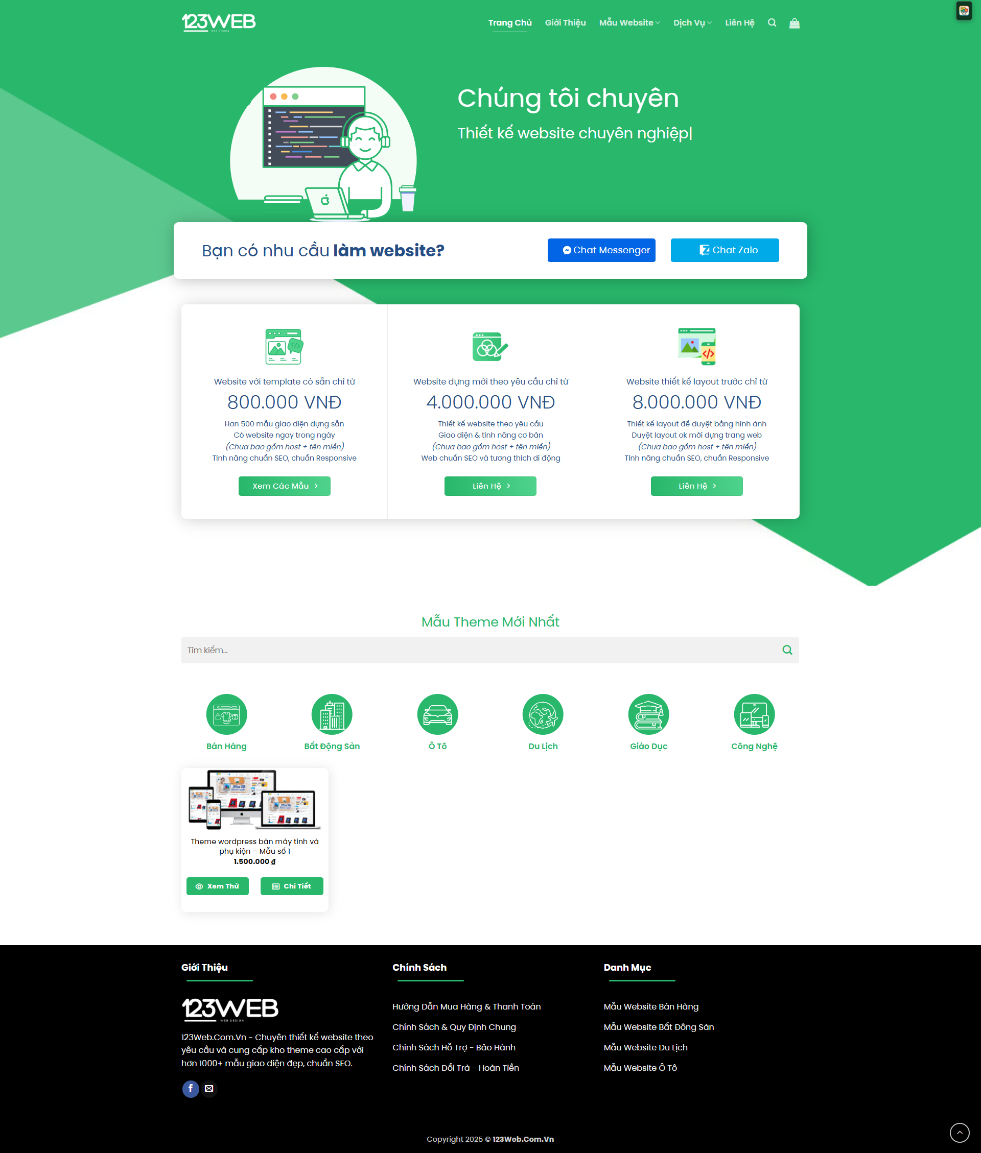 Theme WordPress Dịch Vụ Thiết Kế Web 01. Thiết kế đẹp, chuyên nghiệp, có tính năng giới thiệu và bán giao diện web mẫu.